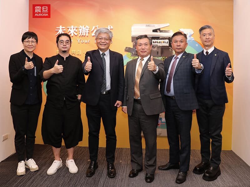 震旦「未來辦公式」展示中心開幕,邀請嘉賓共同見證企業低碳轉型新契機。(右起震旦行發言人馬志賢總經理、震旦集團廖慶章總經理、震旦辦公設備簡志遠副總經理、數位轉型學院詹文男院長、看見.齊柏林基金會齊廷洹董事、數位時代齊立文內容長。)震旦辦公設備(OA)於12/15成立「未來辦公式」展示中心,提供「智能高效」、「節能減碳」、「環保永續」三大解決方案,從選用環保節能事務機、掌握設備碳排係數,以節律照明與AI空氣淨化,協助企業打造符合健康WELL辦公場域;並透過「循環經濟」服務模式,將舊機整新再利用,推出環保「齊心機」提高設備再生價值,實踐綠色低碳轉型。