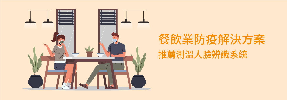 餐飲業服務受疫情影響甚鉅,落實防疫措施之餘,透過測溫人臉辨識系統量測溫度,免去專人手動量測,省時、省力更安全。