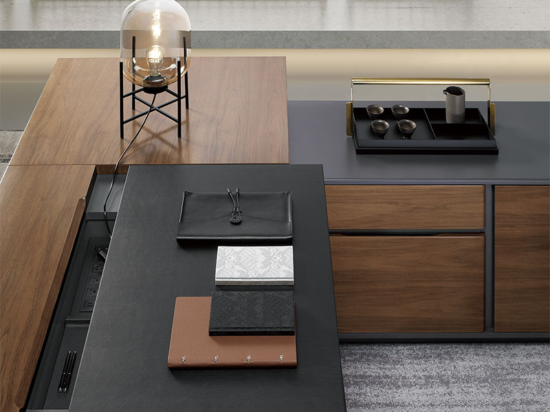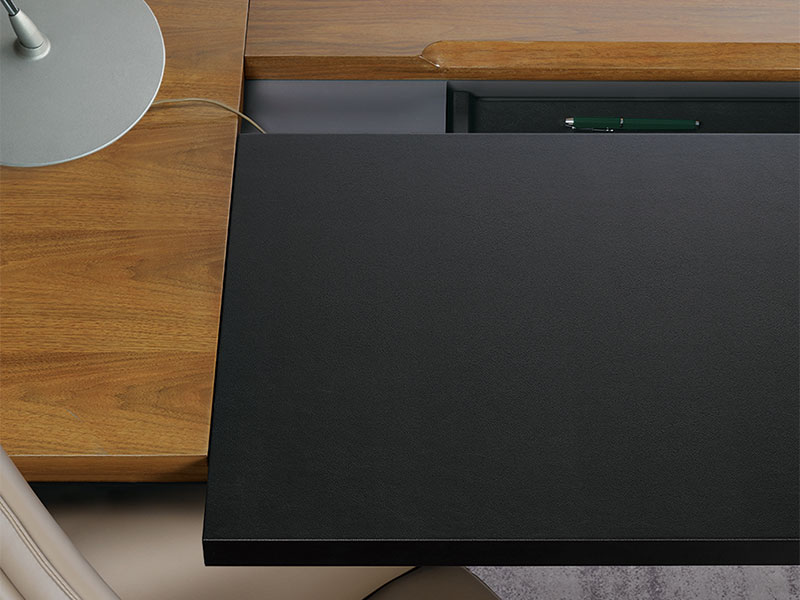 內斂的筆槽與走線設計,桌邊緣處導角處理,加之油漆潤色,使其倍顯圓潤、細膩與精緻,更給人安全親切之感。
