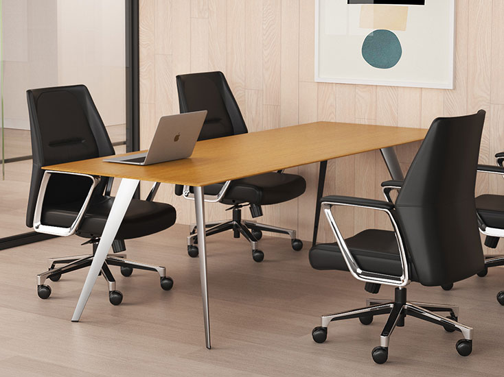 俐落的斜切線條,帶來當代的美感;簡潔的線面關係,簡約大氣, 剛柔並濟的會議桌造型。