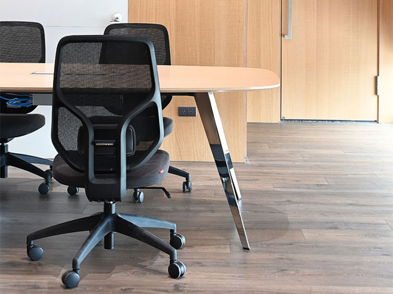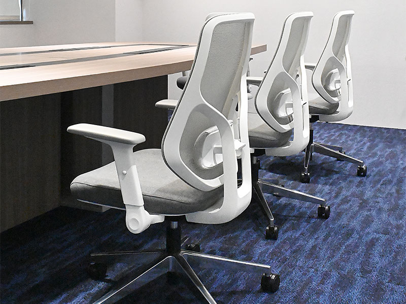 流線型椅背設計搭配簡約風家具,呈現現代辦公美學。